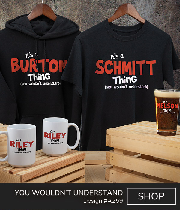 We aim for perfection, and that means hundreds of brilliant designs on T-shirts, hoodies, hats, pint glasses, decanters, rocks glasses, artwork, and more. And what separates us from the rest is that we personalize these designs for you and your loved ones – something to celebrate your unique style and your one-of-a-kind family.