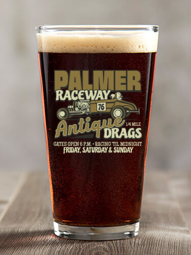 Clear Antique Drag Race Personalized pint-glass-color