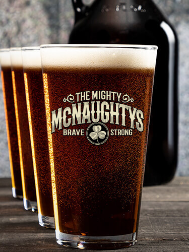 Display your clan's strong Irish roots while wearing our Mighty personalized t-shirts, hats, and more. Celebrate any occasion using custom pint glasses, wine glasses, and cheese boards. Add some final touches to your home bar with custom coasters, growlers, and beer mugs. A fun design created just for you. Simply add your name.