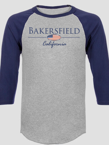 Sports Grey/Navy Hometown Flag Personalized raglan-3-4-sleeve-tshirt