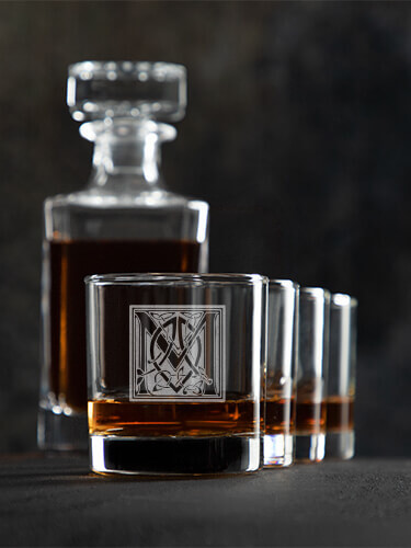 Clear German Monogram Personalized whiskey-decanter-rocks-glass-set